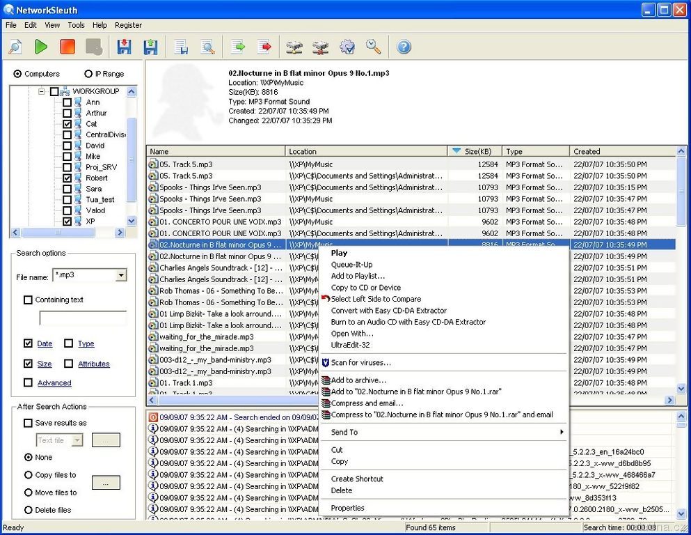 NetworkSleuth umožňuje rýchlu lokalizáciu súborov v sieti.