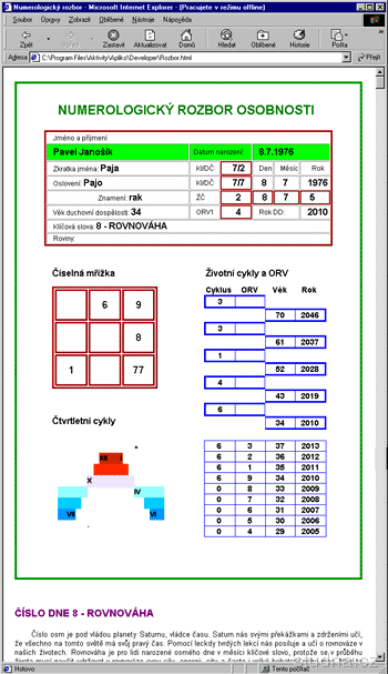 Parametre programu Numerológia Profi alebo pre rodinu 8.013