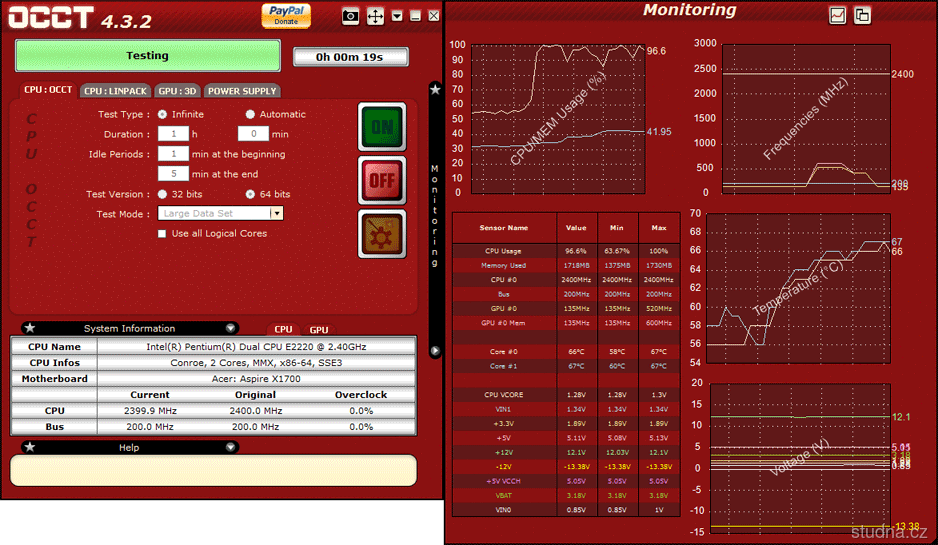 OCCT (Overclock Checking Tool) je nástroj na testovanie stability vášho systému s využitím 4 rôznych testov na preverenie CPU, GPU a výkonu napájacieho zdroja.