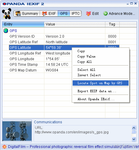 Opanda IExif umožňuje zobrazenie digitálnych fotografií vrátane všetkých dostupných EXIF, IPTC/NAA a GPS údajov (ako, kedy a kde bola snímka zhotovená, akým modelom fotoaparátu, …).