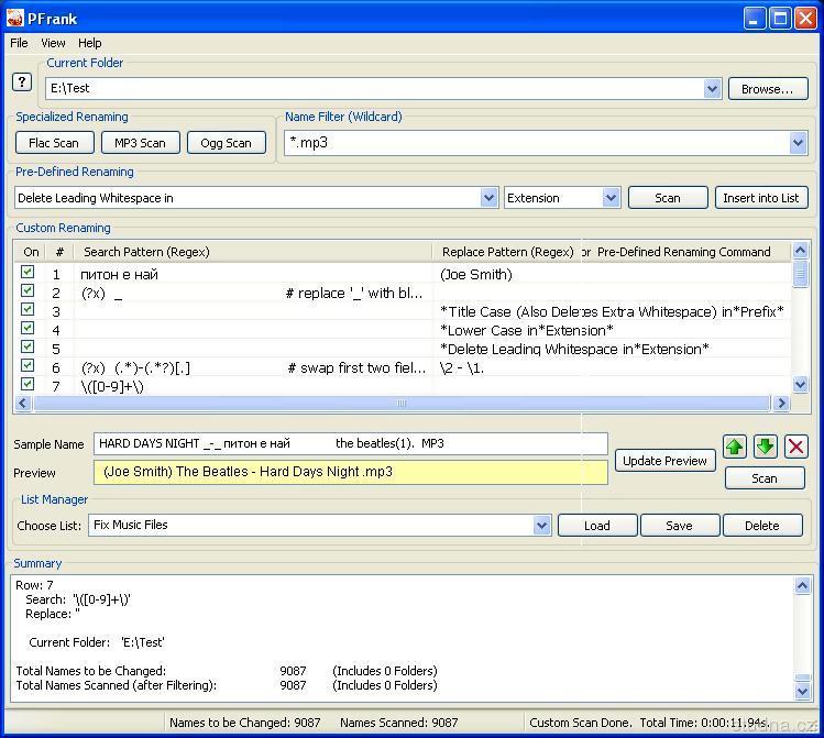 Program umožňujúci hromadnú úpravu názvov súborov a ID3 tagov podľa ID3 popisov a zadaného vzorca, napr.
