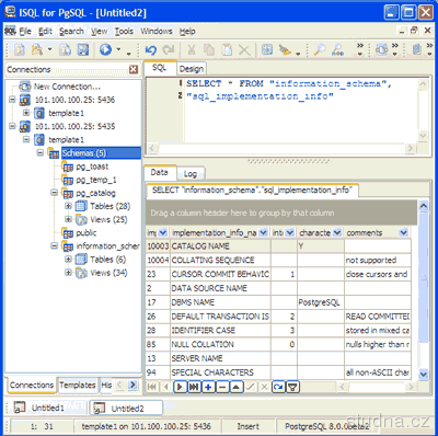 Parametre programu pgISQL (Interactive SQL for PostgreSQL) 2.2.0