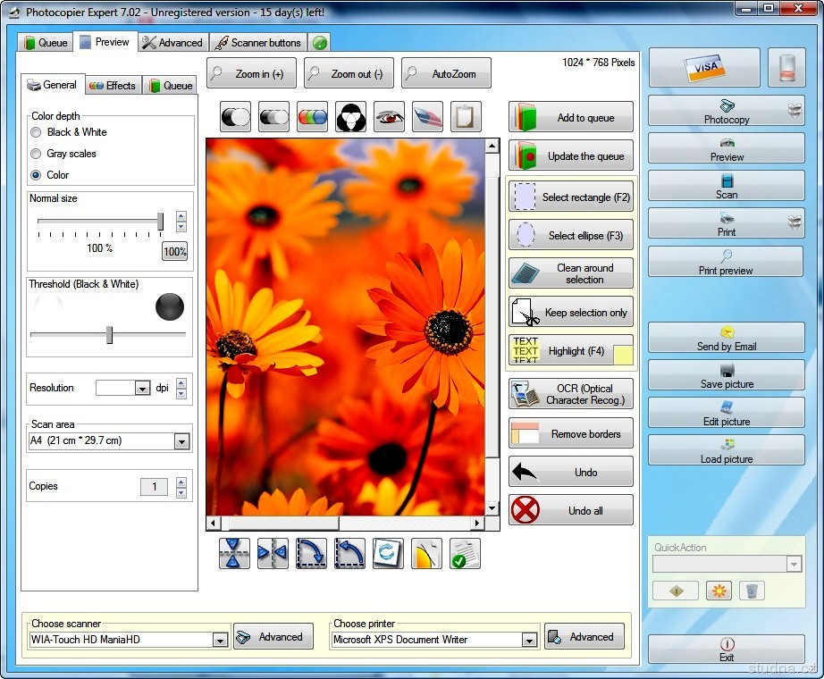 Parametre programu Photocopier Expert 7.222