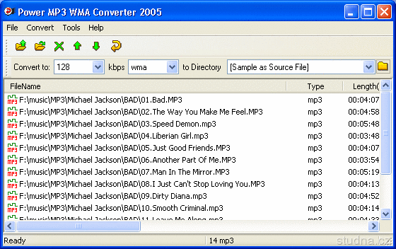 Nástroj pre konverziu zvukových súborov radu formátu do formátov wav, mp3, wma, ogg, ape, mp2, m2a.