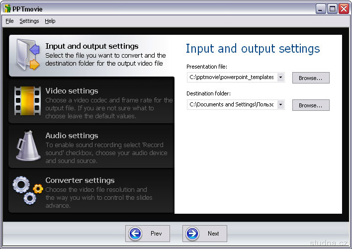 Program pre konverziu prezentácií PowerPoint do súborov videa radu populárnych formátov (AVI, MPEG-1, MPEG-2, MP4).