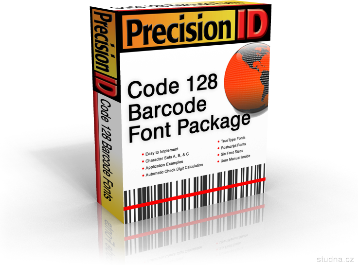 Balíček obsahuje 6 veľkostí TrueType a postskriptových písiem čiarového kódu typu Code 128, vrátane formátovacích komponentov PrecisionID Font Formatting Components.