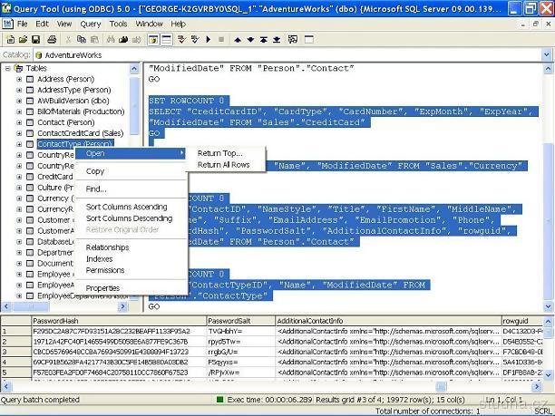 Parametre programu Query Tool (using ODBC) 6.1.5.4