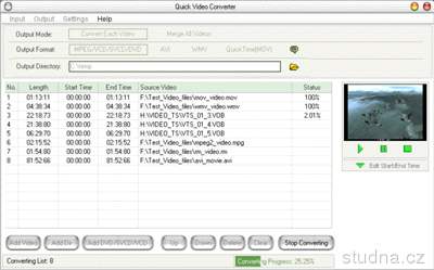 Parametre programu Quick Video Converter 6.20
