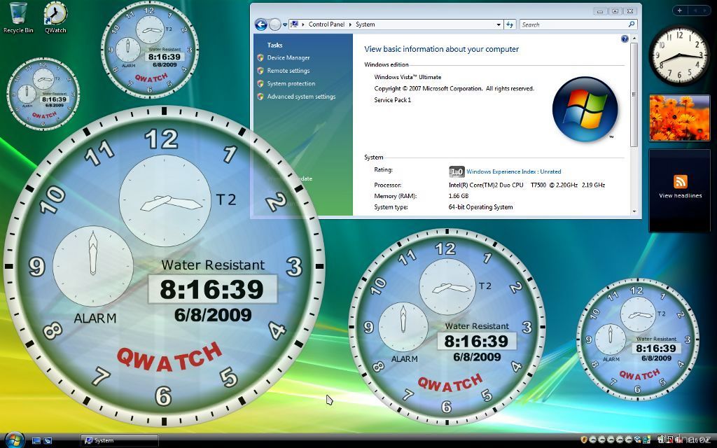 Jednoduché grafické hodiny s dvojitým časom a alarmom: - open source (otvorený kód) - moderný transparentný vzhľad - okno bez rámu - zobrazenie druhého času - jednoduchý kalendár - grafický a zvukový alarm - nastavenie veľkosti - multiplatformné (Linux a Windows (XP, Vista, Vista x64