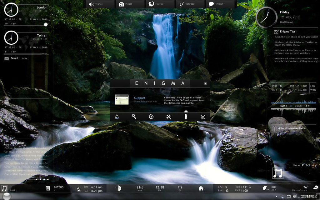 Rainmeter ponúka platformu umožňujúcu zobraziť priamo na ploche vášho počítača aktuálne informácie o spotrebe systémových prostriedkov alebo ďalšie údaje z vašich online dátových zdrojov (predpovede počasia, RSS, správy elektronickej pošty, a pod.