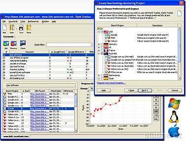 Program umožňujúci monitorovať pozíciu vašich webov na najznámejších vyhľadávacích serveroch (Google, Yahoo!, MSN - celkom 409).