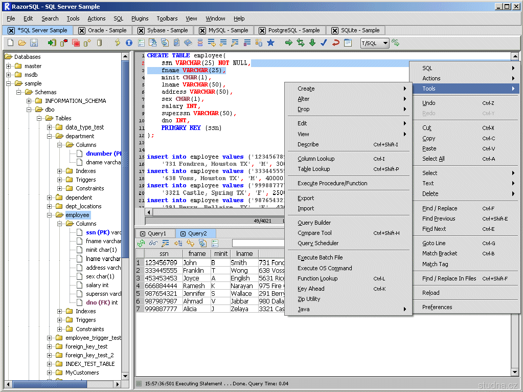 Program ponúka univerzálne nástroje na spúšťanie dotazov, editáciu a správu rôznych databáz.