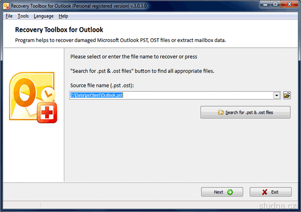 Recovery ToolBox for Outlook je určený na obnovu dát z poškodených dátových súborov (.