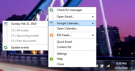 Program monitoruje poštové schránky účtov Gmail a pri príchode novej správy zobrazí informačné okno s predmetom správy a častí obsahu.