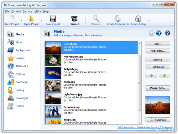Program umožňuje tvorbu profesionálnych šetričov obrazovky určené na zdieľanie s priateľmi aj komerčnú distribúciu, formou shareware so skúšobnou dobou.