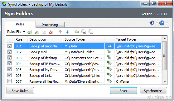 Program umožňuje zálohovanie a synchronizáciu dát na rovnaký disk, výmenné médium, FTP server alebo počítač v sieti.