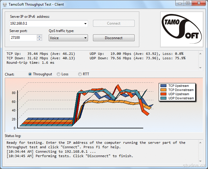 Parametre programu TamoSoft Throughput Test 1.0.21