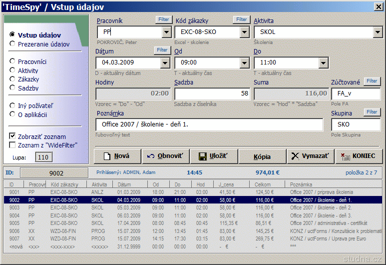 Parametre programu TimeSPy pre EXCEL 2003 2009-A