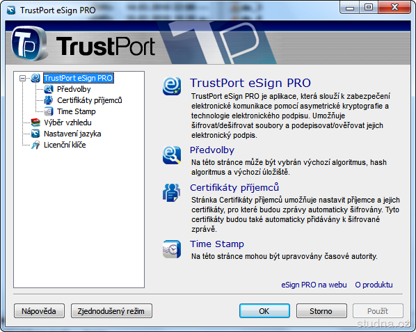 Parametre programu TrustPort eSign Pro 2.0 5.0