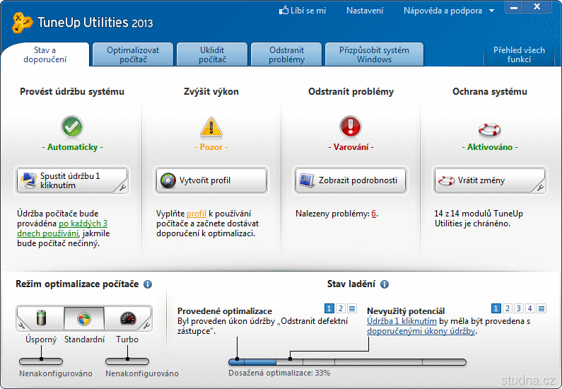 Parametre programu TuneUp Utilities 2013 13.0.3020