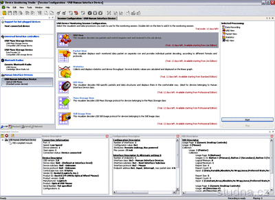 Parametre programu USB Monitor Protocol Analyzer 6.23.00.3373