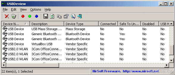 Utilitka zobrazujúca zoznam všetkých USB zariadení momentálne pripojených k vášmu počítaču aj pripojených v minulosti.