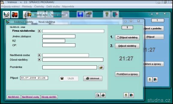 Program je určený pre vedenie evidencie príchodov a odchodov návštev na podnikovej vrátnici, evidenciu doby a cieľov výjazdov vlastných vozidiel z podniku, zostavuje rozpis služieb vrátnikov a evidenciu ich pracovného času.