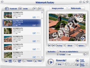 Watermark Factory umožňuje vloženie textu alebo obrázku vo forme vodoznaku do ľubovoľnej snímky.