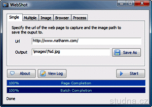 Program umožňuje snímať náhľady webových stránok a ukladať ich do súborov vo formáte JPG, PNG, GIF alebo BMP.