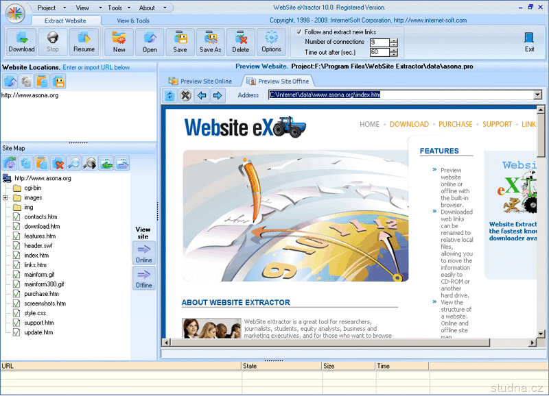 Offline prehliadač, ktorý uloží kópiu obsahu webových stránok na disk vášho PC so zachovaním originálnej štruktúry adresárov.