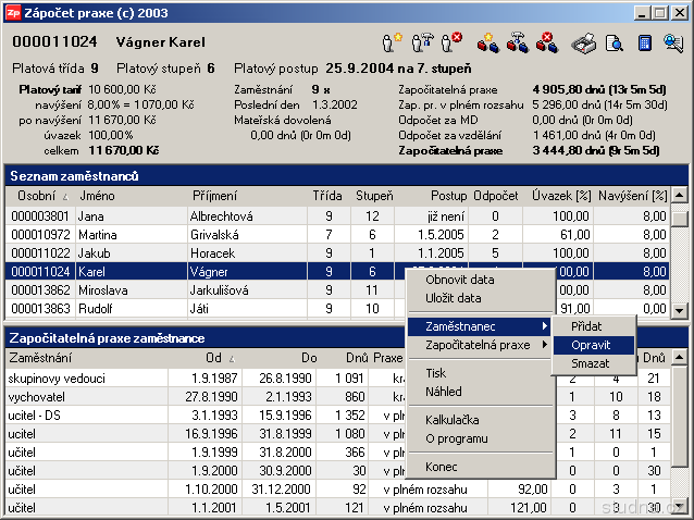 Moderný program poskytujúci pohodlnú a prehľadnú evidenciu zápočtu praxe zamestnancov v štátnom sektore.