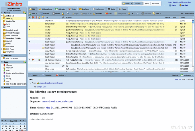 Zimbra Desktop umožňuje z jediného používateľského prostredia ľahko pracovať s vašimi emailovými účtami alebo účtami sociálnych sietí, online aj offline.