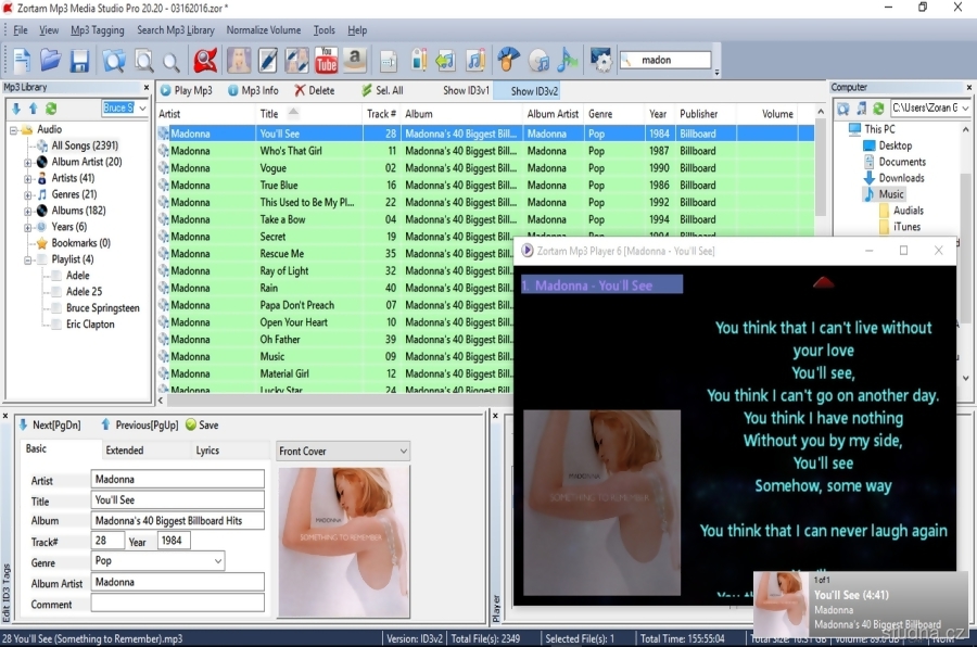 Zortam Mp3 Media Studio ponúka správcu MP3 súborov umožňujúci ich zaradenie do knižnice a vyhľadávanie, nástroj na úpravu ID3v1 a ID3v2.